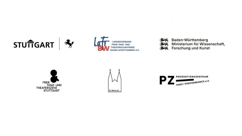 Das Projekt ist gefördert durch die Stadt Stuttgart und die Freie Tanz- und Theaterszene Stuttgart, Landesverband Freie Tanz -und Theaterschaffende Baden-Württemberg (LaFT BW) e.V. Der LaFT BW wird vom Ministerium für Wissenschaft, Forschung und Kunst Baden-Württemberg gefördert. Mit freundlicher Unterstützung von St.Maria als, dem Produktionszentrum Tanz + Performance e.V. Besonderer Dank für die Überlassung von Probenräumlichkeiten an das Junge Ensemble Stuttgart (JES) sowie an FITZ Theater Animierter Formen.